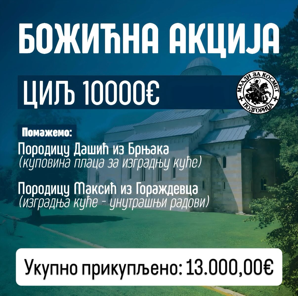 Благодарећи Господу, Хуманитарни омладински клуб „Млади за Космет“ је 2025. годину окончао са сакупљених и подијељених више од 80.000,00 еура.
