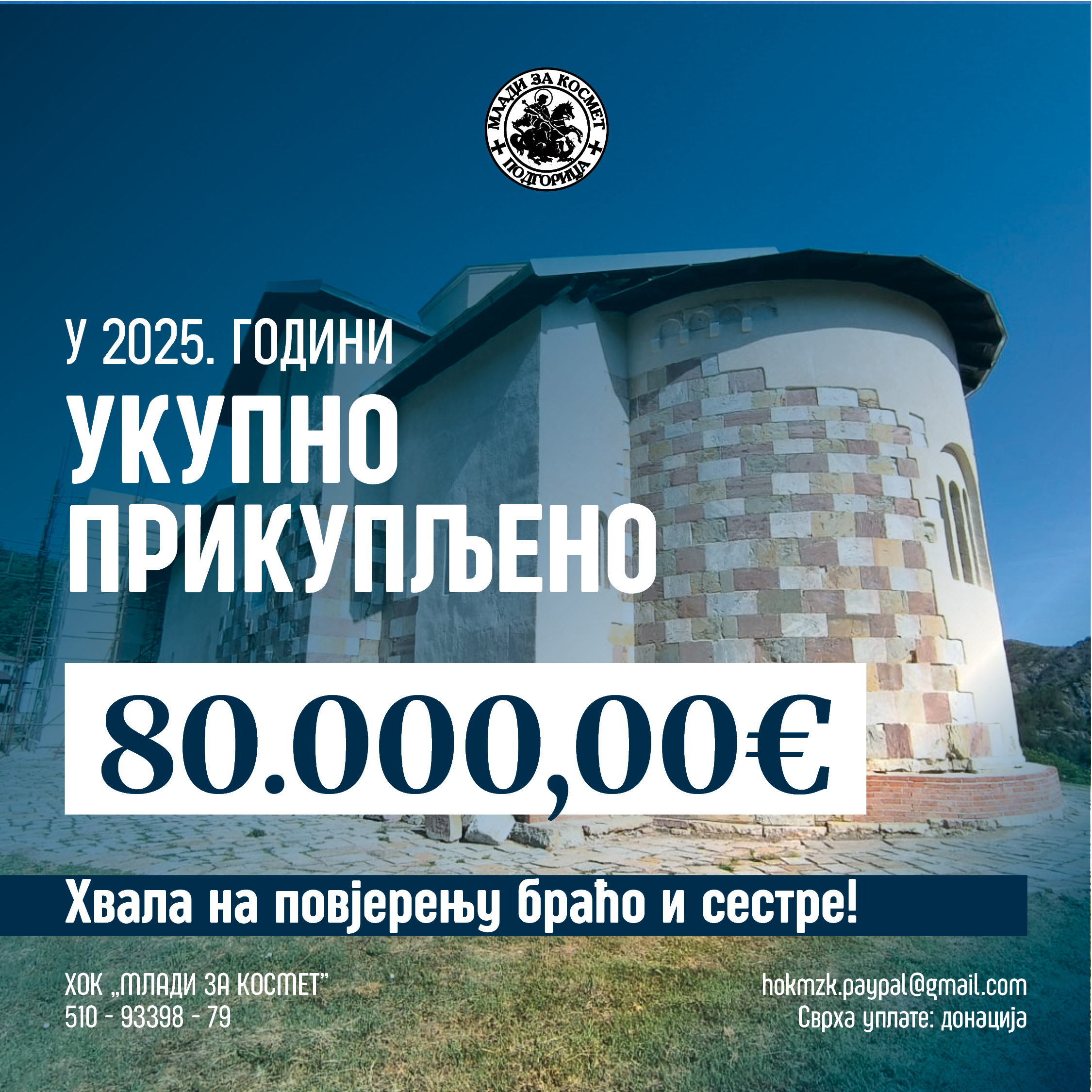 Благодарећи Господу, Хуманитарни омладински клуб „Млади за Космет“ је 2025. годину окончао са сакупљених и подијељених више од 80.000,00 еура.