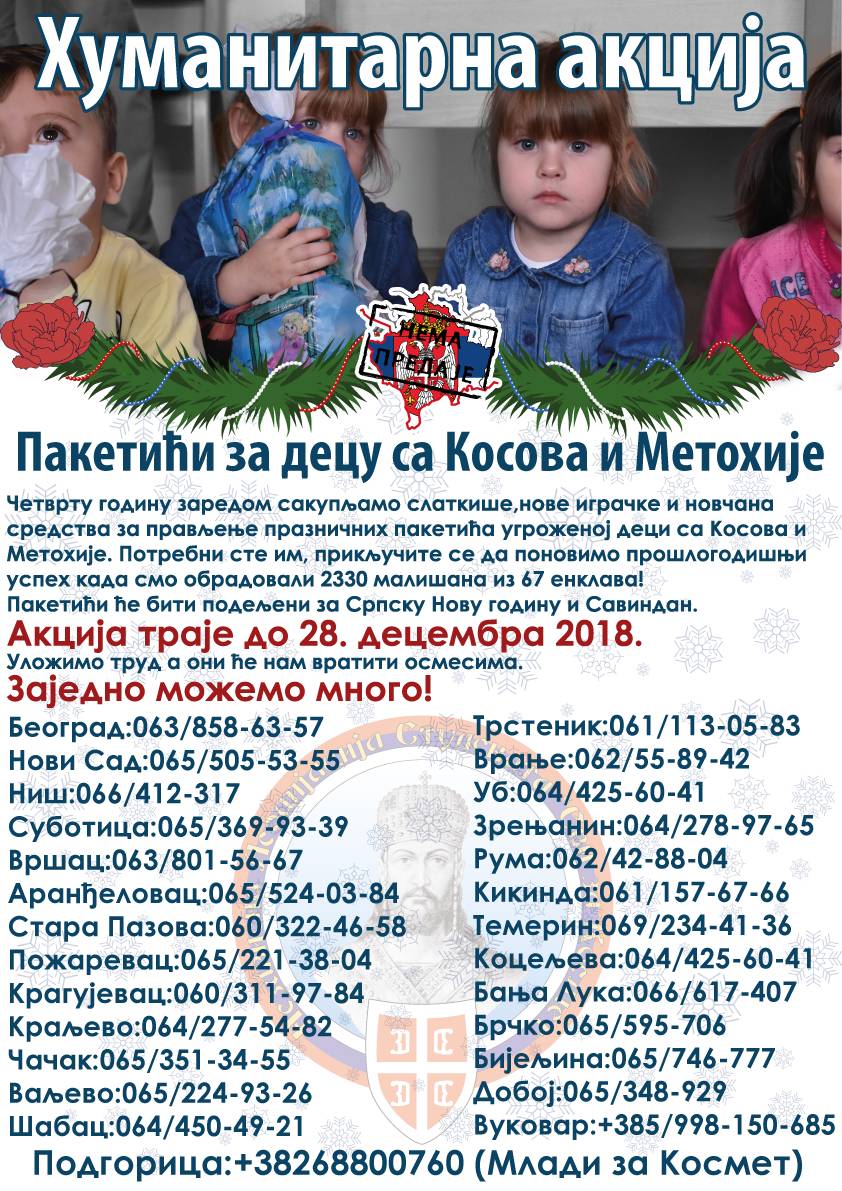 Драга браћо и сестре, обавјештавамо вас да је акција прикупљања новчаних средстава за куповину пакетића дјеци са Косова и Метохије завршена.