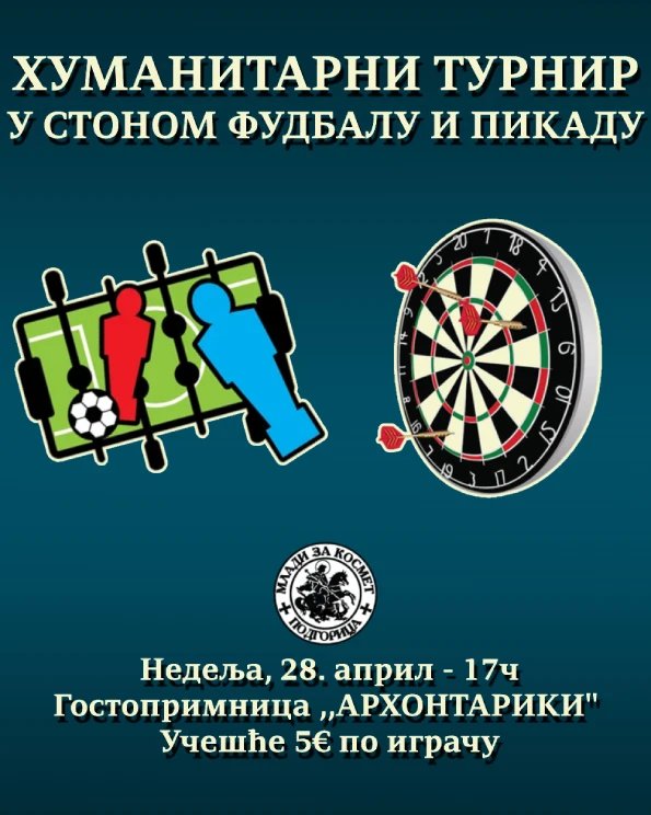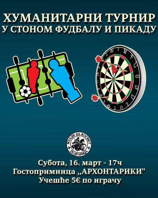 У недељу 28. априла, на празник Цвијети, одржаће се још један хуманитарни турнир у стоном фудбалу и пикаду. Ово ће бити други турнир у склопу Васкршње акције, па ће сав приход од те вечери бити намијењен истој.